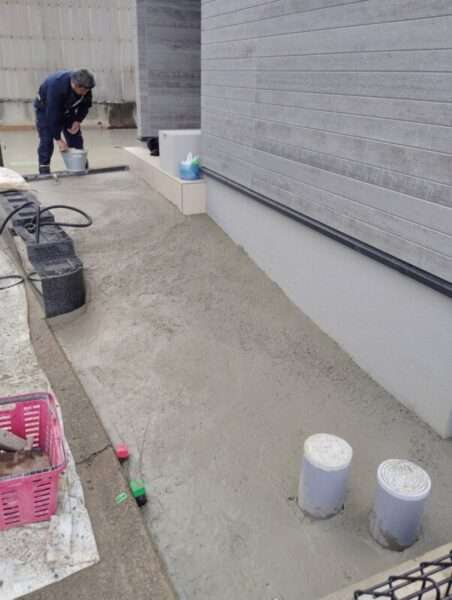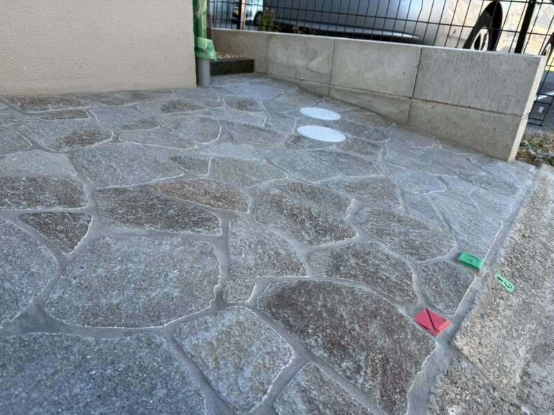 こんにちは☆ 外構工事のスロープ、乱張り完成です!