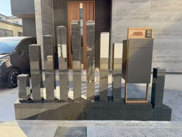 玄関前に間隠し石柱を施工しました。カタログにはない完全オリジナルデザインです。