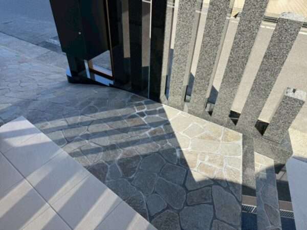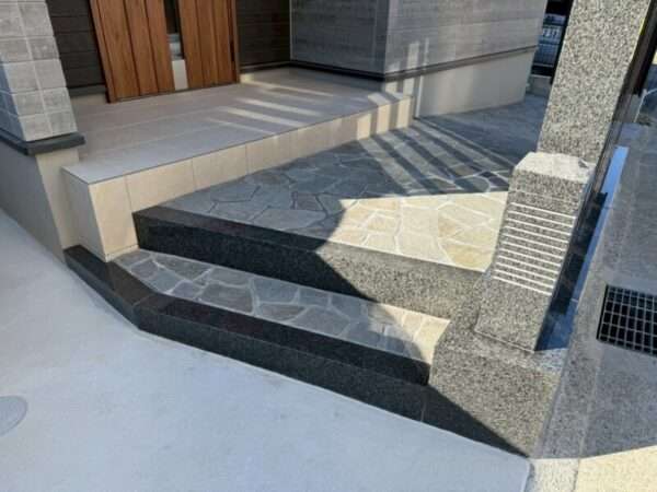 1枚、1枚表情の異なる自然石を組み合わせることで、奥行きと立体感のあるアプローチになりました。