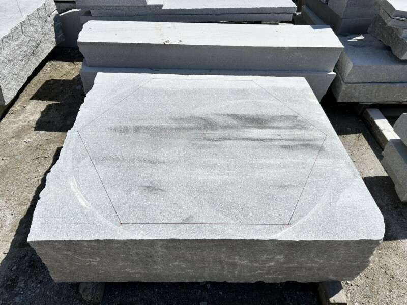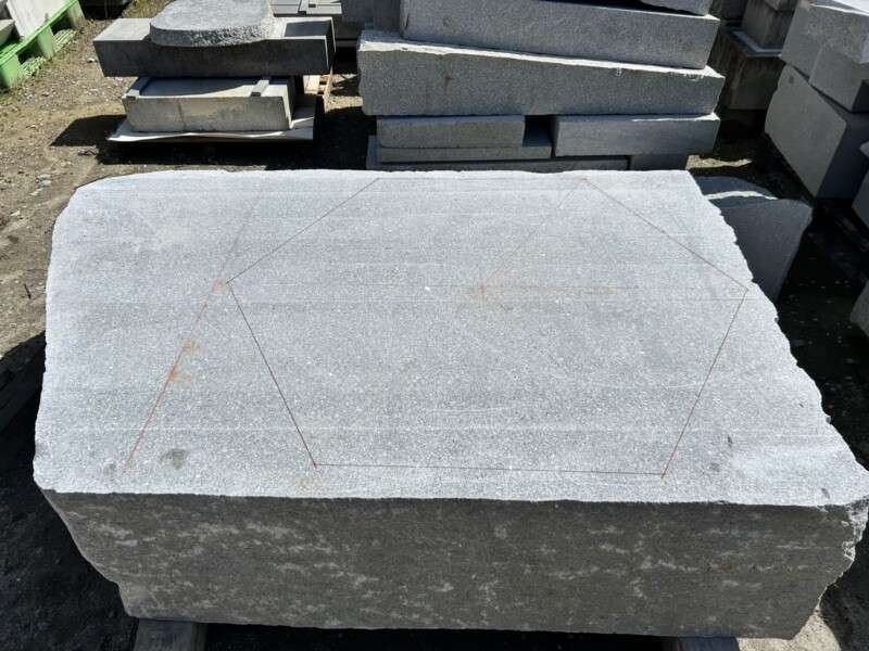 こんにちは! 今日は春日型灯籠9尺、笠の石材切削するために石材の寸法をかいてます。