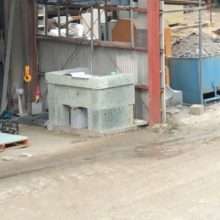 こんにちは☆ 今回の画像は工場での石材切削の様子です! 灯籠の部材やお墓の部材を切削しています! 今日は工場で灯籠の石材切削やお墓の部材の磨き加工作業…