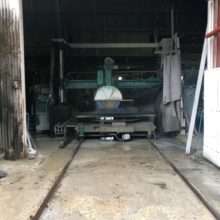 こんにちは☆ 今回の画像は石材切削機械稼働中、磨き加工作業の様子、墓石展示場の画像ですヾ(≧▽≦)ノ 切削している石材は春日型灯篭の地輪になります。磨き加工…