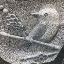 こんにちは☆ 今回の画像は記念品(彫刻)ですヾ(≧▽≦)ノ 板石(みかげ石)に鳥の彫刻をしました。強弱をつけるために様々な技法や技術、エアー工具等を使って加…
