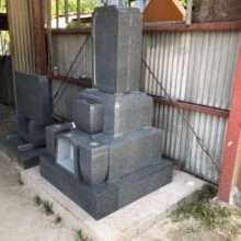こんにちは☆ 今回の画像はお位牌型墓石(牛岩石(青石))の完成画像です(^^)/ お位牌型墓石の図面作成から石材切削、細かい加工・磨き作業まで自社製造加工…
