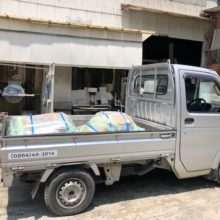 こんにちは☆ 今回の画像は灯籠を納品するために運送会社さんへ行く前の様子です(^^)/ 今日はベテラン職人さんが現場へ行ってます。工場では最年長の職人さん…