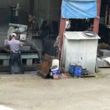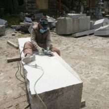 こんにちは☆ 今日の画像は蘭渓型灯籠の火袋加工作業の様子です(^^)/ いつもとかわらず最年長の職人さんが火袋を加工しております。工場では現場から戻ってき…